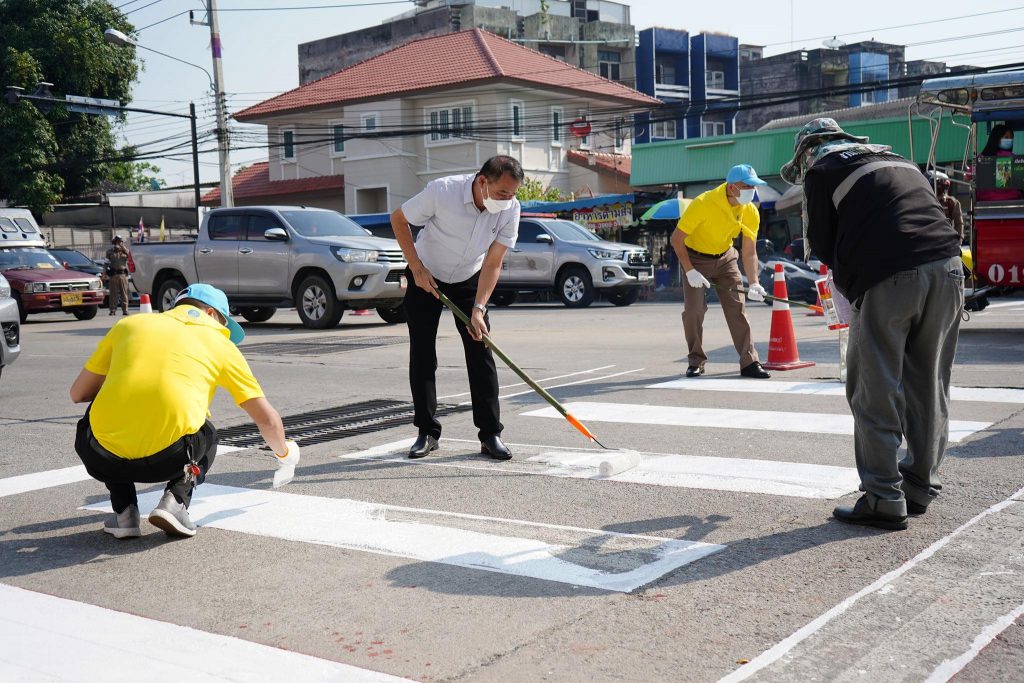 7 ก.พ.65 เวลา 09.30 น. นายวิชิต ชิตวิเศษ นายกเทศมนตรีเมืองบ้านสวน พร้อมด้วยเจ้าหน้าที่เทศกิจเทศบาลเมืองบ้านสวน ร่วมกิจกรรมจิตอาสากับเจ้าหน้าที่ตำรวจงานจราจร สถานีตำรวจภูธรเมืองชลบุรี ดำเนินการทาสีทางม้าลาย เพื่อสร้างวินัยจราจร ลดอุบัติเหตุ และเพื่อความปลอดภัยสำหรับประชาชนที่เดินข้ามถนน บริเวณหน้าวิทยาลัยการสาธารณสุขสิรินธร (คลินิกหมอครอบครัวศูนย์สุขภาพชุมชนเมืองชลบุรี)