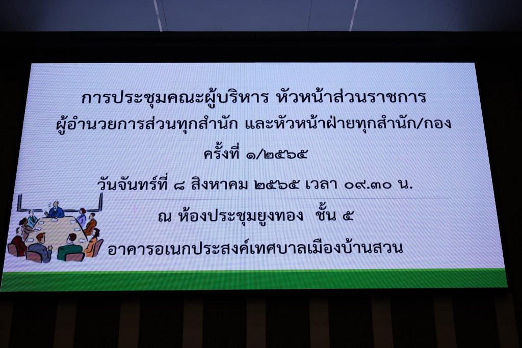 8 ส.ค.65 เวลา 09.30 น. นายวิชิต ชิตวิเศษ นายกเทศมนตรีเมืองบ้านสวน เป็นประธานการประชุมหัวหน้าส่วนราชการ ประจำเดือนสิงหาคม 2565 เพื่อติดตามความคืบหน้าของโครงการกิจกรรมของเทศบาล ประจำปีงบประมาณ 2565 ที่ได้ดำเนินการแล้วและที่ยังไม่ได้ดำเนินการ พร้อมทั้งรับฟังปัญหาอุปสรรคและหาแนวทางแก้ไข พร้อมกับแนะนำพนักงานที่เข้ามาทำงานใหม่ ณ ห้องประชุมยูงทอง ชั้น 5 อาคารอเนกประสงค์เทศบาลเมืองบ้านสวน