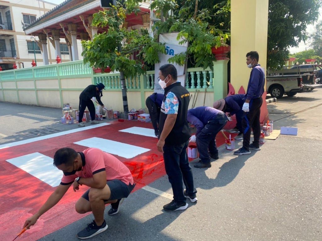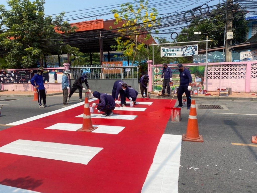 9 มี.ค.65 เวลา 09.00 น. นายวิชิต ชิตวิเศษ นายกเทศมนตรีเมืองบ้านสวน มอบหมายให้เจ้าหน้าที่เทศกิจ ดำเนินการทาสีทางม้าลาย เพื่อสร้างวินัยจราจร ลดอุบัติเหตุ และเพื่อความปลอดภัยสำหรับประชาชนที่เดินข้ามถนน โดยมีสมาชิกสภาเทศบาลเมืองบ้านสวนร่วมตรวจความเรียบร้อย บริเวณหน้าโรงเรียนบ้านหนองตะโก