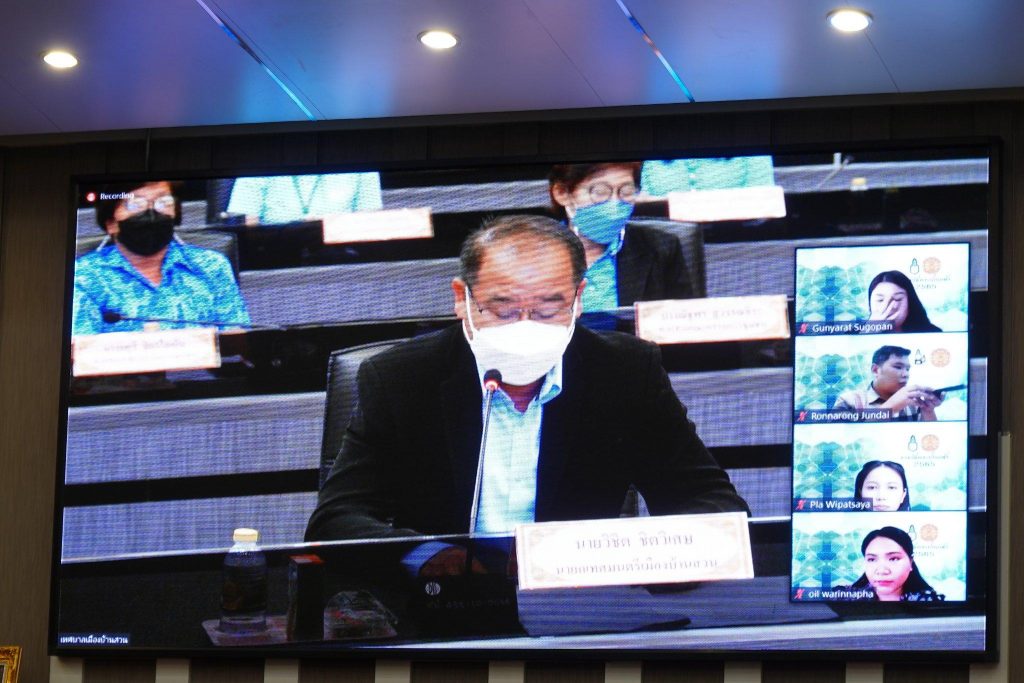 เทศบาลเมืองบ้านสวน เข้ารับการประเมินผลงาน การปฏิบัติงานที่เป็นเลิศ ขององค์กรปกครองส่วนท้องถิ่น เพื่อเข้ารับรางวัลพระปกเกล้า ประจำปี 2565 “ด้านการลดความเหลื่อมล้ำในสังคม” ในการขอพบปะพูดคุยและสนทนากลุ่ม กับตัวแทนประชาคมในพื้นที่ ผ่านโปรแกรม ZOOM Cloud Meetings โดยมีนายวิชิต ชิตวิเศษ นายกเทศมนตรีเมืองบ้านสวน พร้อมด้วยคณะผู้บริหาร หัวหน้าส่วนราชการ ตัวแทนคณะกรรมการชุม ตัวแทนผู้นำกลุ่มชุมชน/สภาองค์กรชุมชน เข้าร่วมรับการประเมินในครั้งนี้ ณ ห้องประชุมยูงทอง ชั้น 5 อาคารอเนกประสงค์เทศบาลเมืองบ้านสวน