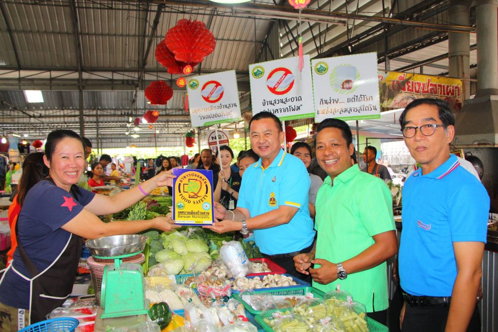 21 ส.ค.62 เวลา 16.30 น. นายจักรวาล ตั้งประกอบ นายกเทศมนตรีเมืองบ้านสวน พร้อมด้วยคณะผู้บริหาร สมาชิกสภาเทศบาล และงานคุ้มครองผู้บริโภคและสุขาภิบาลอาหาร กองสาธารณสุขและสิ่งแวดล้อม ลงพื้นที่ดำเนินการมอบป้าย อาหารปลอดภัย ตามโครงการเฝ้าระวังความปลอดภัย ด้านอาหาร ประจำปีงบประมาณ 2562 โดยมอบให้แผงค้าที่ผ่านการตรวจสอบสารปนเปื้อน 2 ครั้ง และเดินรณรงค์ประชาสัมพันธ์โครงการลดเสี่ยงเลี่ยงการใช้โฟมบรรจุอาหาร บริเวณตลาดนัดซอย 11