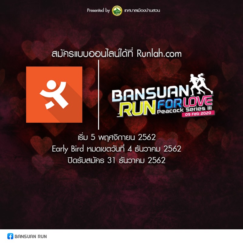 ? สามารถสมัครออนไลน์ได้ที่ https://www.runlah.com/events/bansuan20