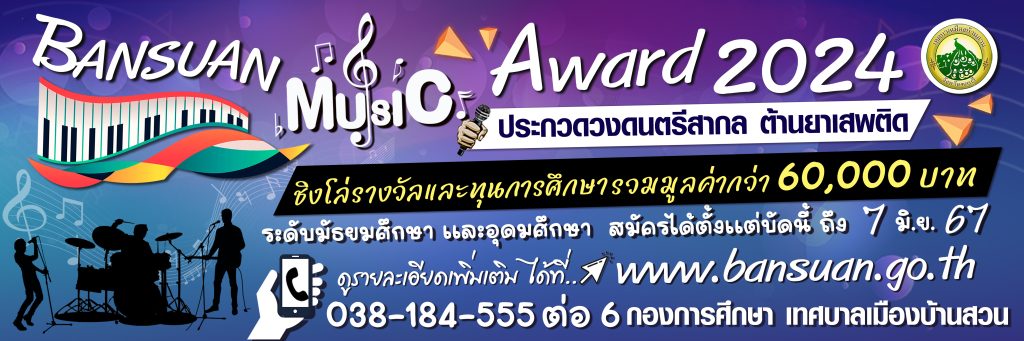 ประกาศเทศบาลเมืองบ้านสวน เรื่อง หลักเกณฑ์การประกวดวงดนตรีสากลต้านยาเสพติด (BANSUAN MUSIC AWARD) ประจำปีงบประมาณ พ.ศ. 2567 Loading… Taking too long? Reload document | Open in new tab Download Loading… Taking too long? Reload document | Open in new tab Download