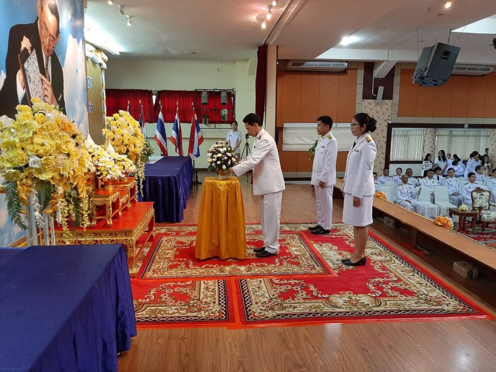 14 พ.ย.62 เวลา 7.00 น. พนักงานเทศบาลเมืองบ้านสวน เข้าร่วมพิธีวางพานพุ่มดอกไม้สดเนื่องในวันพระบิดาแห่งฝนหลวง ประจำปี 2562 ณ ศาลาเฉลิมพระเกียรติ อำเภอเมืองชลบุรี จังหวัดชลบุรี