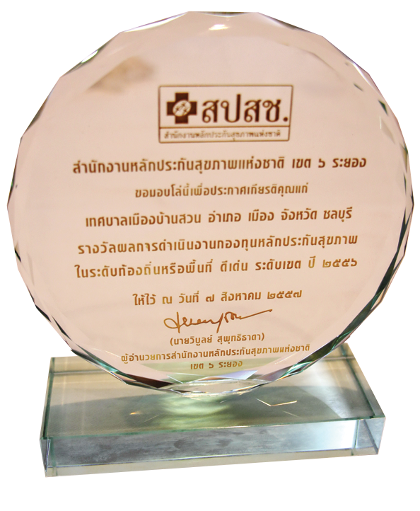 เทศบาลเมืองบ้านสวน ได้รับโล่รางวัล "พระปกเกล้าทองคำ"