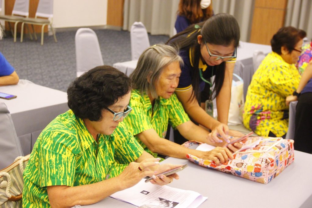 ภาพกิจกรรมโครงการอบรมอินเตอร์เน็ตและการสื่อสารเพื่อประชาชน “หลักสูตรการใช้อินเตอร์เน็ตบนสมาร์ทโฟน” วันที่ 2 การอบรมให้ความรู้พื้นฐานเกี่ยวกับกฎหมายและจริยธรรมคอมพิวเตอร์ ฝึกปฏิบัติการสืบค้นข้อมูลทางอินเตอร์เน็ต เช่น Google ฝึกปฏิบัติการค้นหาสถานที่และเส้นทางต่างๆ (Google maps) ฝึกทักษะการใช้งานโซเชียลเน็ตเวิร์ค (facebook) และฝึกทักษะการใช้โปรแกรมสนทนาบนโทรศัพท์มือถือสมาร์ทโฟน (Line)