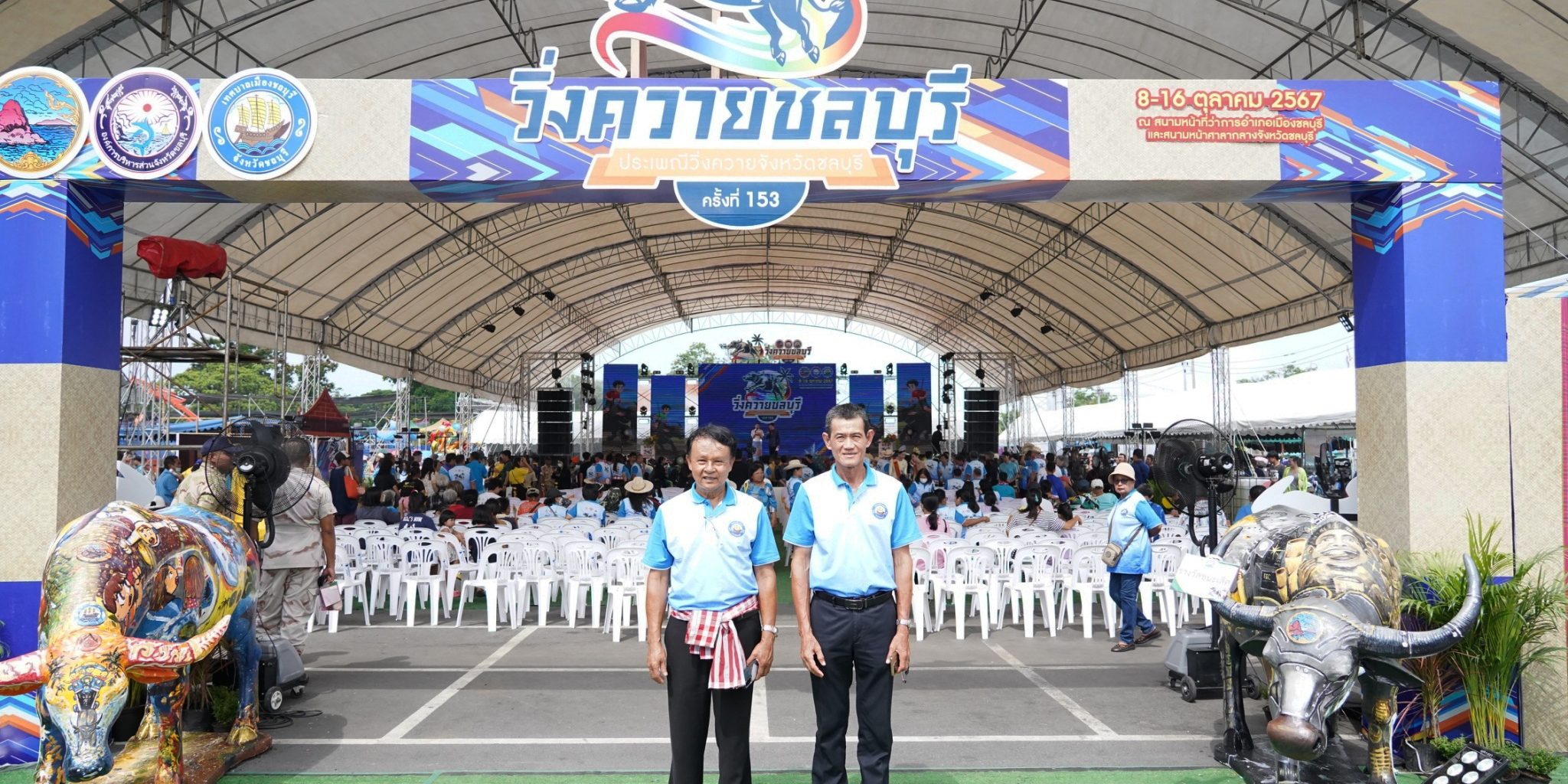 16 ตุลาคม 2567 เวลา 09.30 น. นายชัยเดช ชิตวิเศษ รองนายกเทศมนตรีเมืองบ้านสวน พร้อมด้วยนายพงศ์ชิต สหกิจชัชวาล รองปลัดเทศบาลเมืองบ้านสวน เข้าร่วมพิธีเปิดงานประเพณีวิ่งควายจังหวัดชลบุรี ประจำปี 2567 ครั้งที่ 153 ณ เวทีกลางสนามหน้าที่ว่าการอำเภอเมืองชลบุรี จังหวัดชลบุรี
