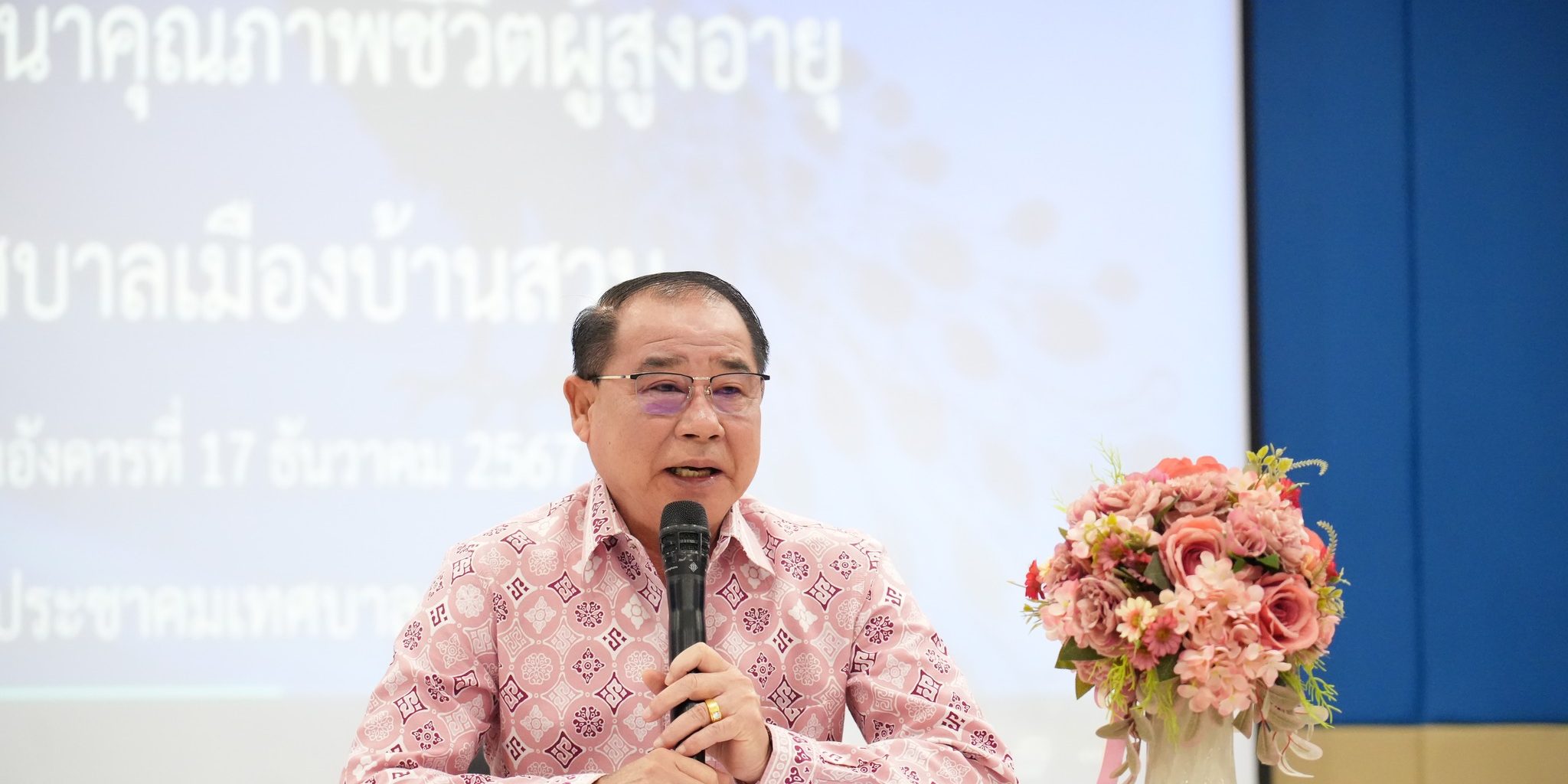 นายวิชิต ชิตวิเศษ นายกเทศมนตรีเมืองบ้านสวน พร้อมด้วยคณะผู้บริหาร สมาชิกสภาเทศบาล และหัวหน้าส่วนราชการ เข้าร่วมเปิดกิจกรรมอบรมเชิงปฏิบัติการ โครงการพัฒนาศูนย์พัฒนาคุณภาพชีวิตผู้สูงอายุ โดยมีการให้ความรู้เรื่อง “การส่งเสริมสุขภาพผู้สูงวัย อยู่อย่างไรให้เป็นสุขในวัยสูงอายุ” ซึ่งได้รับเกียรติวิทยากรจาก วิทยาลัยการสาธารณสุขสิรินธร จังหวัดชลบุรี มาเป็นวิทยากรอบรมให้ความรู้ ณ ศาลาประชาคมเทศบาลเมืองบ้านสวน