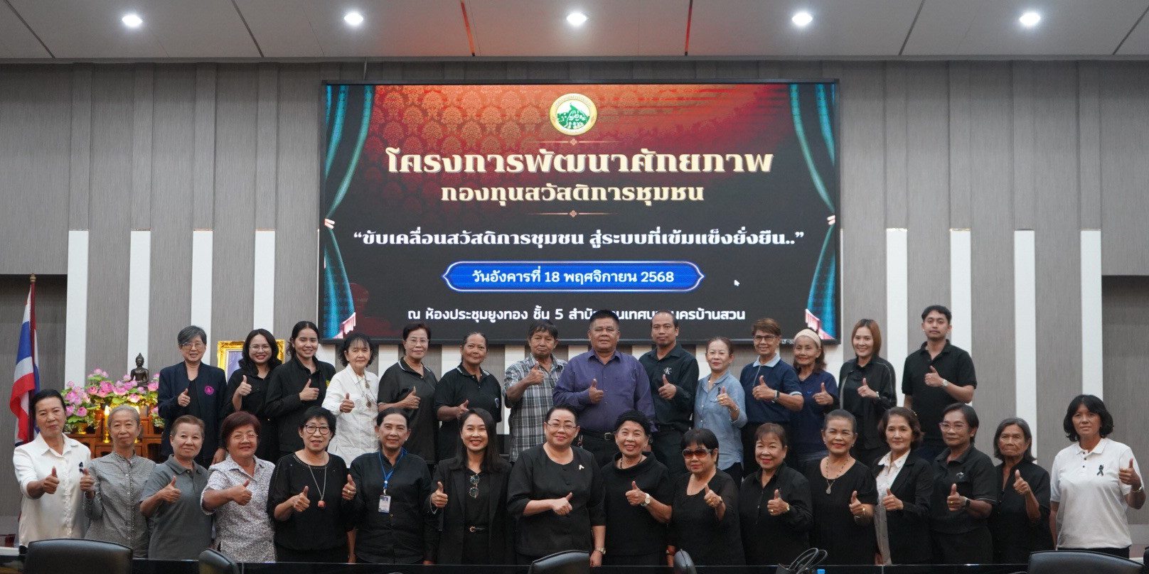 18 พฤศจิกายน 2568 เวลา 09.00 น. นายฉัตรชัย อั้งลิ้ม นายกเทศมนตรีนครบ้านสวน มอบหมายให้ นายศักดา วุฒิสารวรากรณ์ รองนายกเทศมนตรีนครบ้านสวน พร้อมด้วยคณะผู้บริหาร ประธานสภาเทศบาล สมาชิกสภาเทศบาล หัวหน้าส่วนราชการ เข้าร่วมเปิดโครงการพัฒนาศักยภาพกองทุนสวัสดิการชุมชน ซึ่งมีการอบรมในหัวข้อ “การขับเคลื่อนสวัสดิการชุมชน สู่ระบบที่เข้มแข็งและยั่งยืน” และ “การดำเนินงานด้านสวัสดิการสังคม เพื่อพัฒนาท้องถิ่นอย่างมีประสิทธิภาพ” โดยได้รับเกียรติจาก นางสาวจันจิรา ไทยบัณฑิตย์ พัฒนาสังคมและความมั่นคงของมนุษย์จังหวัดชลบุรี เป็นวิทยากรบรรยายอบรมในครั้งนี้ ณ ห้องประชุมยูงทอง ชั้น 5 สำนักงานเทศบาลนครบ้านสวน