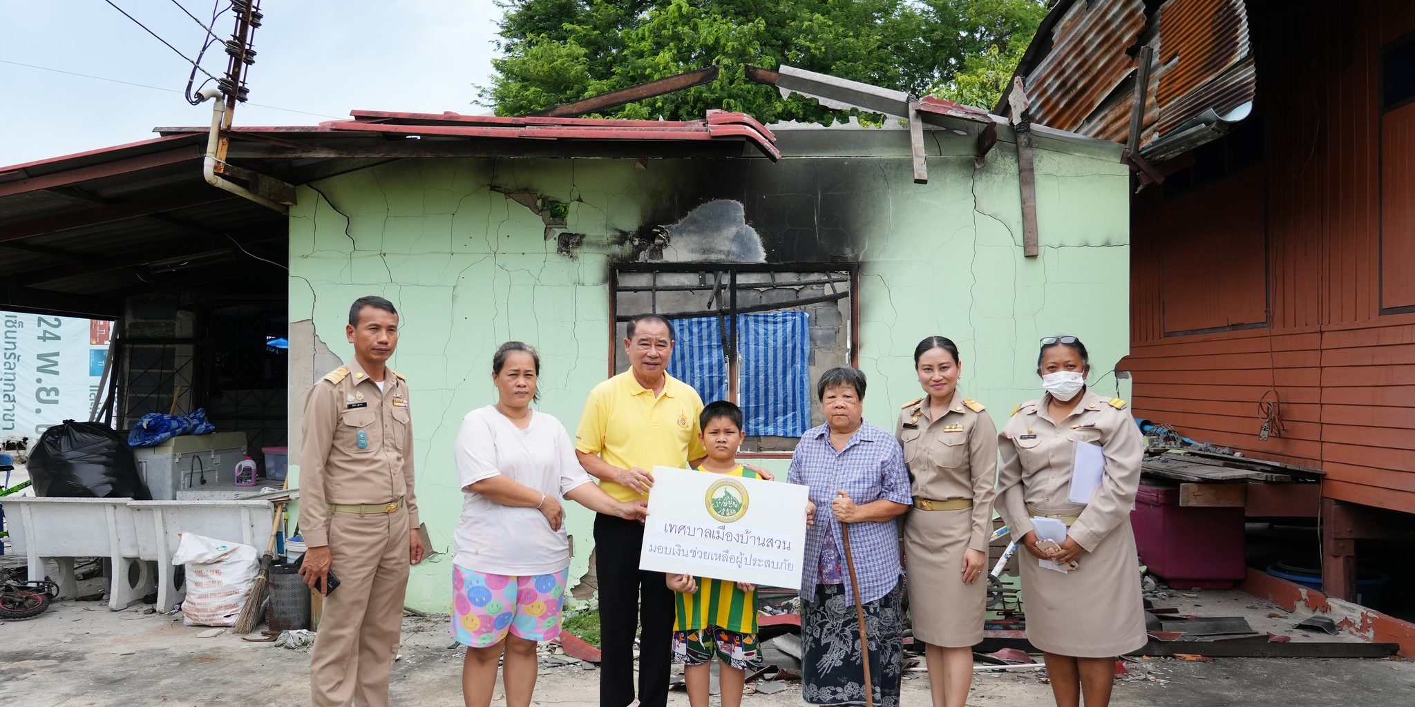20 ส.ค.67 เวลา 13.30 น. นายวิชิต ชิตวิเศษ นายกเทศมนตรีเมืองบ้านสวน พร้อมด้วยหัวหน้าสำนักปลัดเทศบาล และเจ้าหน้าที่ที่เกี่ยวข้อง ได้มอบเงินช่วยเหลือประชาชนที่ได้รับผลกระทบ กรณีเกิดสาธารณภัย “อัคคีภัย” จำนวน 21,700 บาท เพื่อเป็นการบรรเทาความเดือดร้อนในเบื้องต้น และเพื่อสร้างขวัญกำลังใจให้กับผู้ประสบเหตุสาธารณภัยในครั้งนี้