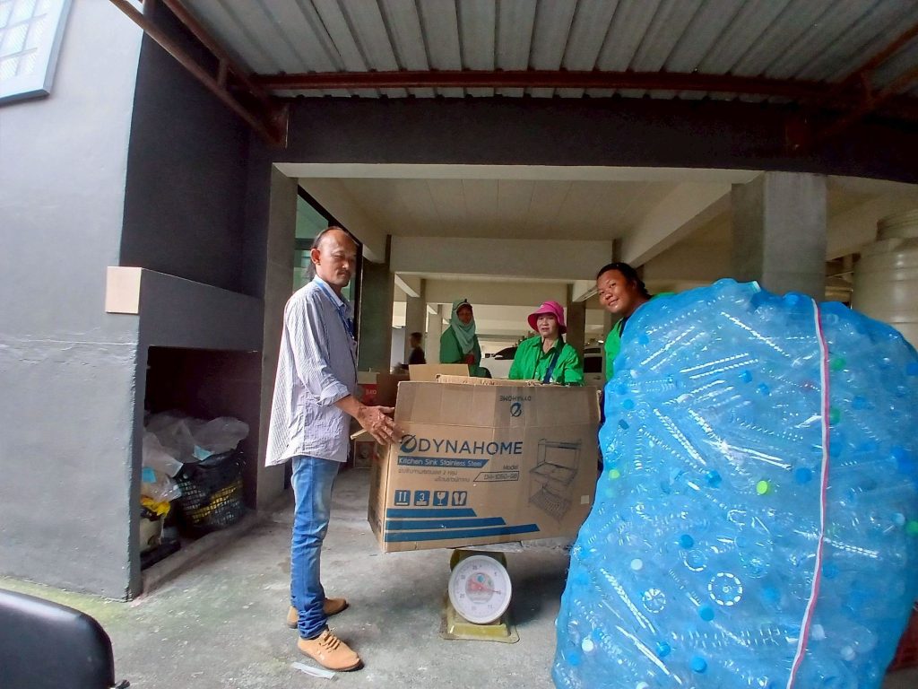 26 กันยายน 2568 เวลา 08.30 น. นายฉัตรชัย อั้งลิ้ม นายกเทศมนตรีนครบ้านสวน มอบหมายให้ งานรักษาความสะอาด สำนักสาธารณสุขและสิ่งแวดล้อมเทศบาลนครบ้านสวนร่วมกับชุมชนบ้านสวนแก้วชุมชนบ้านสวนสามัคคีและชุมชนบ้านหนองตาท้วม ดำเนินกิจกรรมธนาคารขยะชุมชนบ้านสวนแก้ว ณ สำนักชีนารีวงศ์ ม.2 ต.บ้านสวน อ. เมืองชลบุรี จ.ชลบุรี รับซื้อขยะรีไซเคิล จากสมาชิกธนาคารขยะชุมชน จำนวน 875 กก. เพื่อรณรงค์ให้มีการคัดแยกขยะมูลฝอยในครัวเรือน รณรงค์สร้างความรับรู้ ความเข้าใจและจิตสำนึกให้ประชาชนในท้องถิ่นมีส่วนร่วมในการลดปริมาณ และคัดแยกมูลฝอย เพื่อนำกลับมาใช้ใหม่ มีความตระหนักรู้และรับผิดชอบในการจัดการมูลฝอย ณ แหล่งกำเนิดมูลฝอย