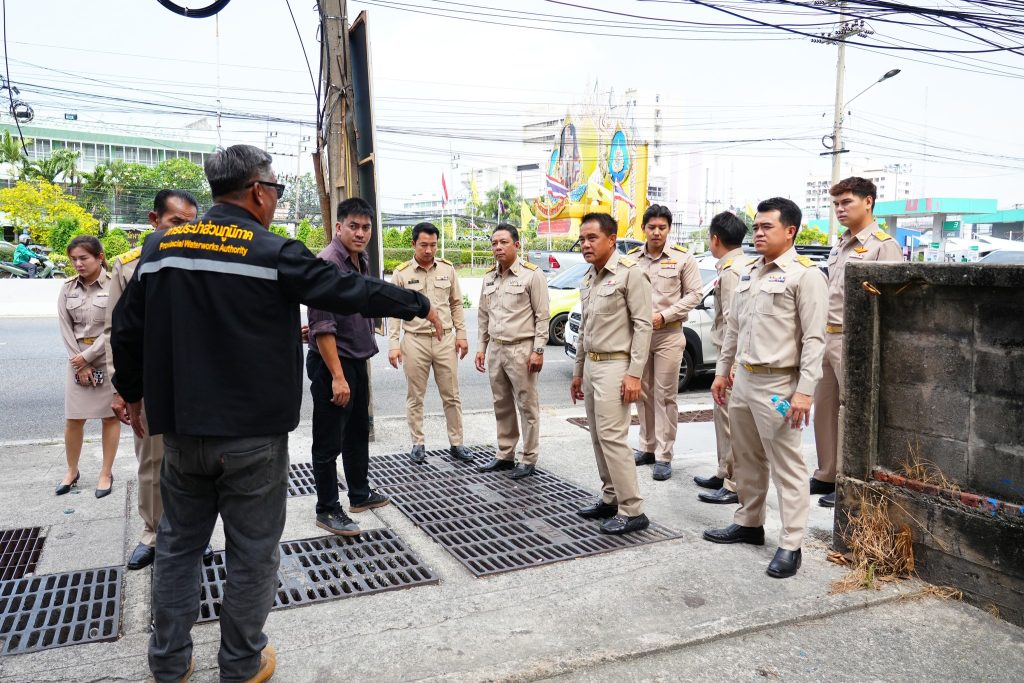 26 กุมภาพันธ์ 2569 เวลา 11.00 น. นายฉัตรชัย อั้งลิ้ม นายกเทศมนตรีนครบ้านสวน พร้อมด้วยคณะผู้บริหาร สมาชิกสภาเทศบาล และเจ้าหน้าที่ที่เกี่ยวข้อง ลงพื้นที่ติดตามการดำเนินงานปรับปรุงภูมิทัศน์ ภายในซอยบ้านสวน-สุขุมวิท 22 ตามนโยบายเร่งด่วนของผู้ว่าราชการจังหวัดชลบุรี ภายใต้แนวคิดการพัฒนา “ชลบุรีเมืองสะอาด” มุ่งเน้นให้ทุกภาคส่วนร่วมกันสร้างภูมิทัศน์เมืองที่สวยงาม สะอาด ปลอดภัย และเป็นระเบียบเรียบร้อย เพื่อยกระดับมาตรฐานเมืองในทุกมิติ พร้อมทั้งลงพื้นที่ร่วมกับการประปาส่วนภูมิภาคสาขาชลบุรี เพื่อหาแนวทางการไหลของน้ำ ป้องกันน้ำท่วมขังในพื้นที่