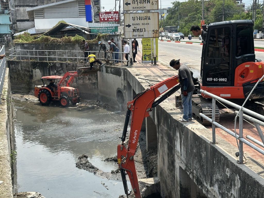 27 มีนาคม 2569 เวลา 11.00 น. นายฉัตรชัย อั้งลิ้ม นายกเทศมนตรีนครบ้านสวน พร้อมด้วยคณะผู้บริหาร สมาชิกสภาเทศบาล ลงพื้นที่ติดตามการดำเนินงานขุดลอกคลอง บริเวณหน้าไทวัสดุ ถนนเศรษฐกิจ (ต่อเนื่อง) เพื่อแก้ไขปัญหาคลองตื้นเขิน และเพิ่มประสิทธิภาพการไหลของน้ำ ป้องกันปัญหาน้ำท่วมขังในพื้นที่