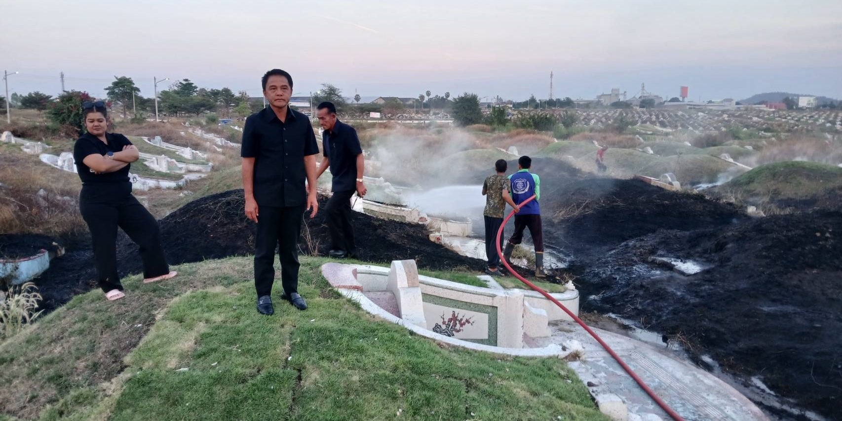 28 มกราคม 2569 เวลา 17.30 น. นายฉัตรชัย อั้งลิ้ม นายกเทศมนตรีนครบ้านสวน พร้อมด้วยสมาชิกสภาเทศบาล และงานป้องกันและบรรเทาสาธารณภัย ลงพื้นที่ควบคุมสถานการณ์เหตุลักลอบเผาหญ้าบริเวณสุสานเม่งหุย และขอความร่วมมือผู้รับจ้างดูแลหลุม ให้งดเผาทุกกรณี