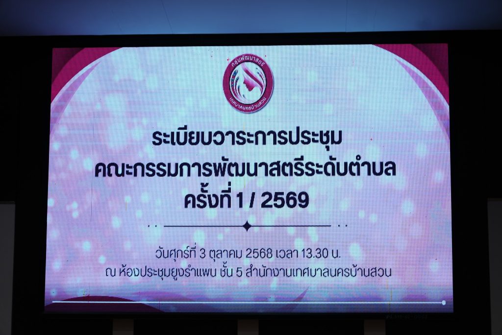 3 ตุลาคม 2568 เวลา 13.30 น. นายฉัตรชัย อั้งลิ้ม นายกเทศมนตรีนครบ้านสวน พร้อมด้วยคณะผู้บริหาร ประธานสภาเทศบาล สมาชิกสภาเทศบาล และหัวหน้าส่วนราชการ เข้าร่วมรับฟังการประชุมคณะกรรมการพัฒนาสตรีระดับตำบล ครั้งที่ 1/2569 มีวัตถุประสงค์เพื่อชี้แจงบทบาทหน้าที่ของคณะกรรมการพัฒนาสตรี วางแผนการขับเคลื่อนการดำเนินงานกิจกรรมของสตรี รวมทั้งส่งเสริมการสร้างความเข้มแข็ง และเพิ่มขีดความสามารถต่อการพัฒนาสตรีในการที่จะบริหารจัดการองค์กรสตรีให้มีประสิทธิภาพ โดยมีนางจิราพร เอมเจริญ เป็นประธานในที่ประชุม ณ ห้องประชุมยูงรำแพน ชั้น 5 สำนักงานเทศบาลนครบ้านสวน