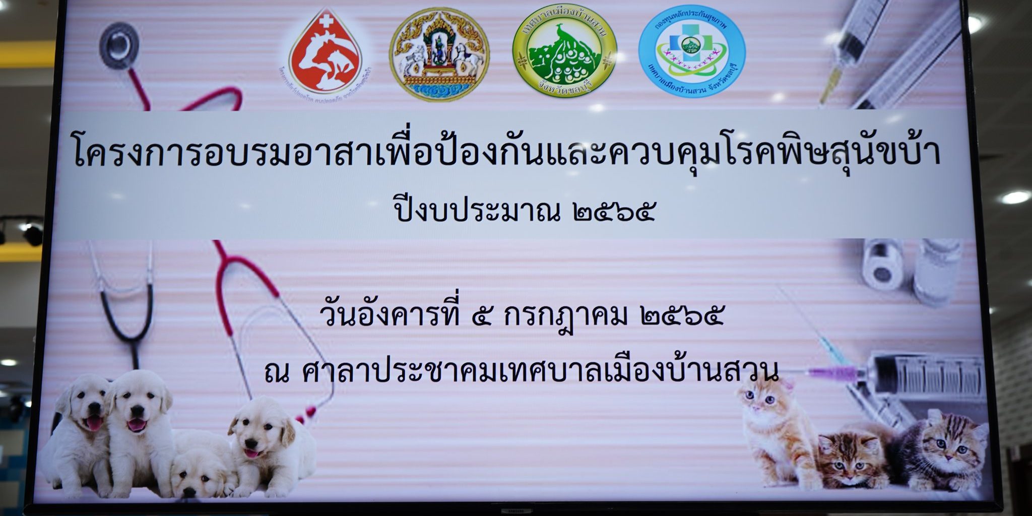 5 ก.ค.65 เวลา 09.00 น. นายวิชิต ชิตวิเศษ นายกเทศมนตรีเมืองบ้านสวน พร้อมด้วยคณะผู้บริหาร สมาชิกสภาเทศบาล หัวหน้าส่วนราชการ เข้าร่วมโครงการอบรมอาสาสมัครเพื่อป้องกันและควบคุมโรคพิษสุนัขบ้า เพื่อพัฒนาศักยภาพให้แกนนำชุมชน อาสาสมัครสาธารณสุข และประชาชน ให้มีความรู้ความเข้าใจ มีทักษะในการปฏิบัติงานด้านการเฝ้าระวัง ป้องกันและควบคุมโรคพิษสุนัขบ้าให้มีประสิทธิภาพ และสามารถป้องกันการเกิดโรคพิษสุนัขบ้าในเขตเทศบาลเมืองบ้านสวน โดยได้รับเกียรติจาก นายเชษฐากฤช ดาราพงศ์ นายสัตวแพทย์ชำนาญการ กลุ่มพัฒนาสุขภาพสัตว์ ปศุสัตว์อำเภอเมืองชลบุรี และนายโชควัฒนา ชมาวัฒน์ เจ้าพนักงานสัตวบาล ที่มาเป็นวิทยากรให้ความรู้ในครั้งนี้ ณ ศาลาประชาคมเทศบาลเมืองบ้านสวน