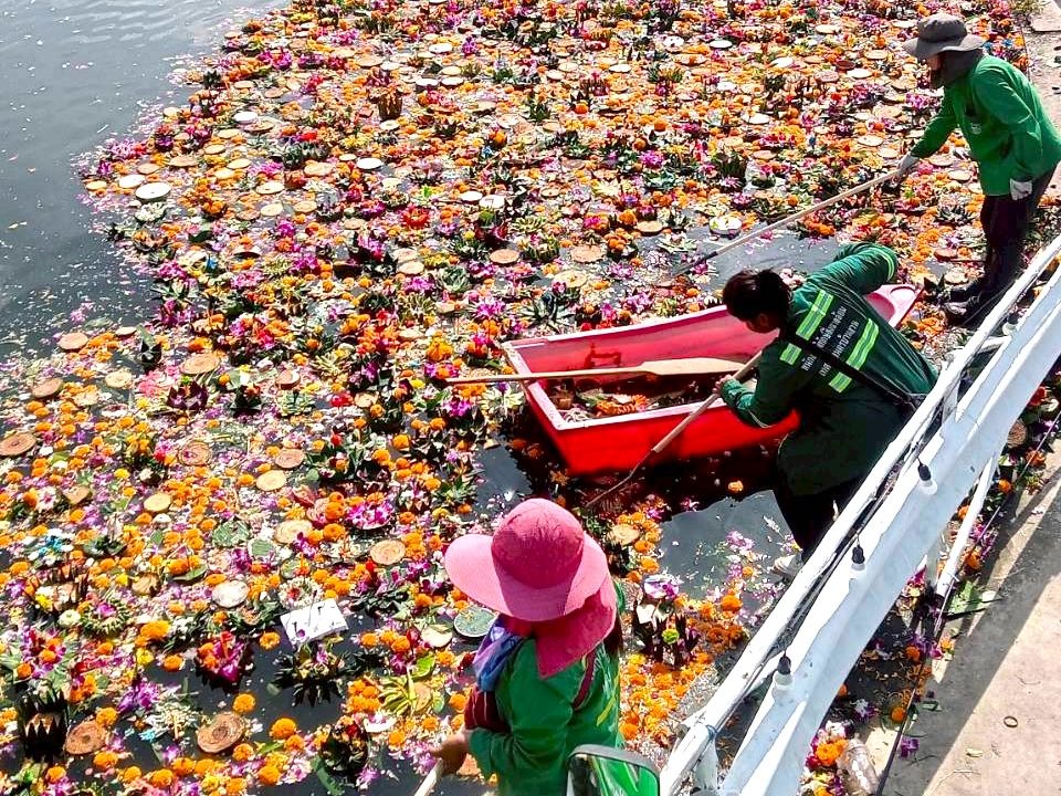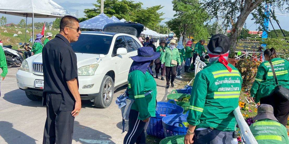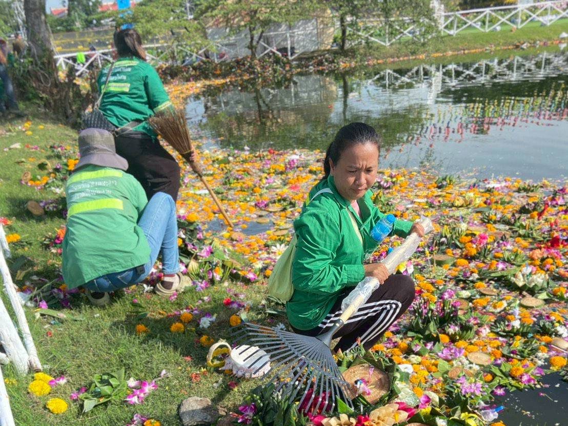 6 พฤศจิกายน 2568 เวลา 09.00 น. นายฉัตรชัย อั้งลิ้ม นายกเทศมนตรีนครบ้านสวน มอบหมายให้ นายสมโพธิ์ นะมะอะอุ รองนายกเทศมนตรีนครบ้านสวน นำทีมเจ้าหน้าที่สำนักสาธารณสุขและสิ่งแวดล้อม ดำเนินการเก็บกระทงและสิ่งปฏิกูลบริเวณโดยรอบสระน้ำไตรสรณะพุทธสมาคม ชลบุรี (เม่งหุย) เพื่อฟื้นฟูสภาพแวดล้อมให้สะอาดเรียบร้อยหลังจากเทศกาลลอยกระทง รักษาความสะอาดของแหล่งน้ำ สร้างจิตสำนึกด้านสิ่งแวดล้อมให้กับประชาชน และนำไปคัดแยกเพื่อกำจัดตามขั้นตอนที่ถูกต้องและเป็นมิตรต่อสิ่งแวดล้อมต่อไป
