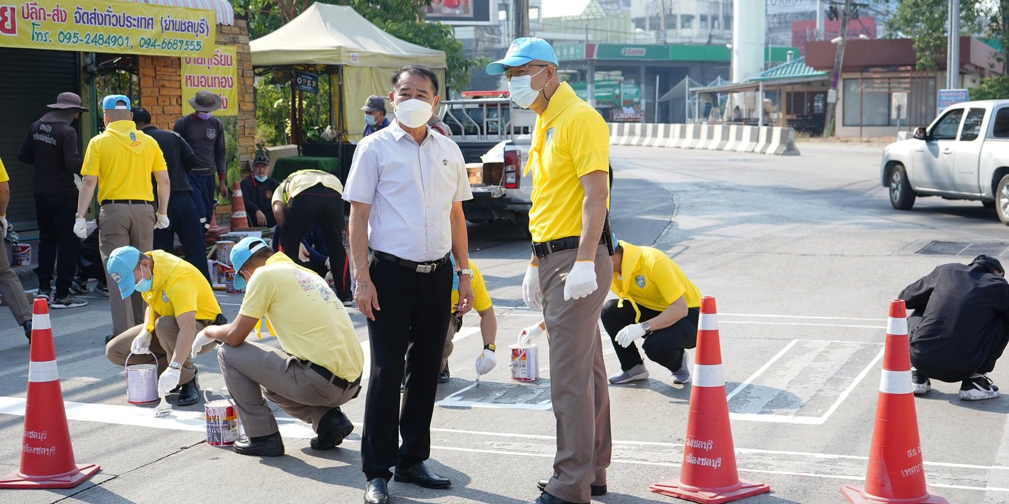 7 ก.พ.65 เวลา 09.30 น. นายวิชิต ชิตวิเศษ นายกเทศมนตรีเมืองบ้านสวน พร้อมด้วยเจ้าหน้าที่เทศกิจเทศบาลเมืองบ้านสวน ร่วมกิจกรรมจิตอาสากับเจ้าหน้าที่ตำรวจงานจราจร สถานีตำรวจภูธรเมืองชลบุรี ดำเนินการทาสีทางม้าลาย เพื่อสร้างวินัยจราจร ลดอุบัติเหตุ และเพื่อความปลอดภัยสำหรับประชาชนที่เดินข้ามถนน บริเวณหน้าวิทยาลัยการสาธารณสุขสิรินธร (คลินิกหมอครอบครัวศูนย์สุขภาพชุมชนเมืองชลบุรี)