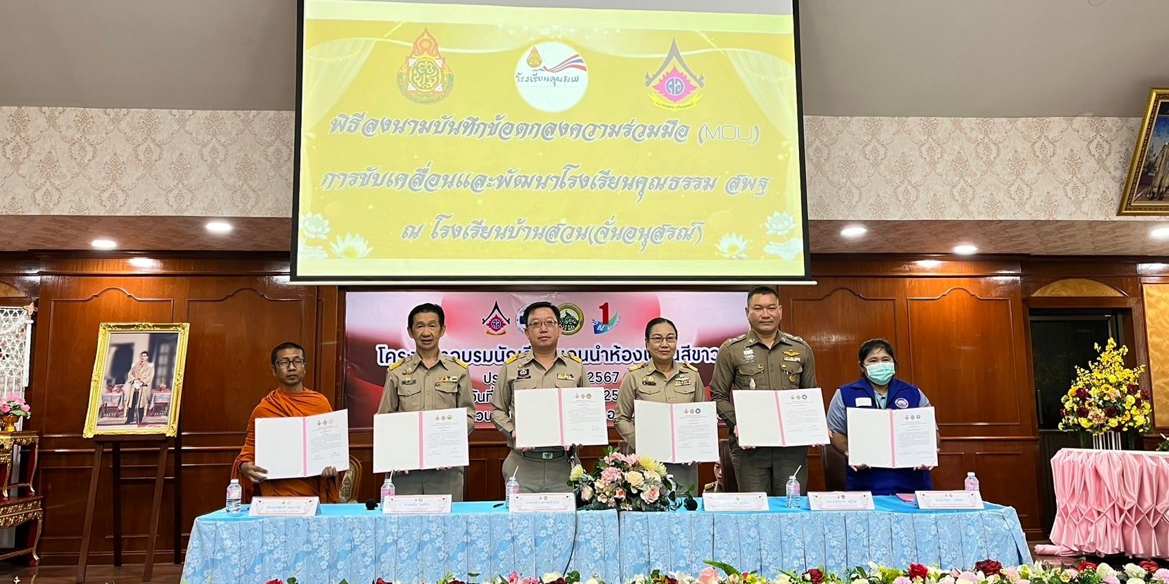 9 ก.ค.67 เวลา 08.30 น. นายมนัส เดชชีวะ รองนายกเทศมนตรีเมืองบ้านสวน เข้าร่วมพิธีลงนามบันทึกข้อตกลงความร่วมมือ (MOU) ในโครงการ “สถานศึกษาสีขาวปลอดยาเสพติด และอบายมุข” ณ ห้องประชุมจั่นบรรพตระกูล โรงเรียนบ้านสวน (จั่นอนุสรณ์)