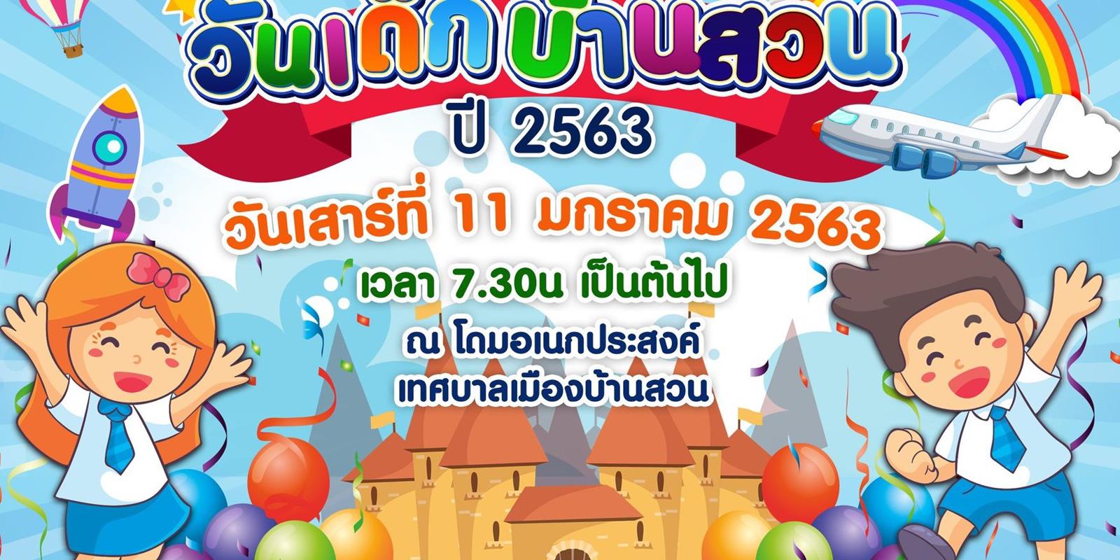 ขอเชิญน้องๆหนูๆ ร่วมกิจกรรมวันเด็กบ้านสวน ประจำปี 2563 ในวันเสาร์ที่ 11 มกราคม 2563 ตั้งแต่เวลา 7.30 น. เป็นต้นไป ณ โดมอเนกประสงค์เทศบาลเมืองบ้านสวน “รักน้อง รักษ์โลก รักการลดพลาสติก”