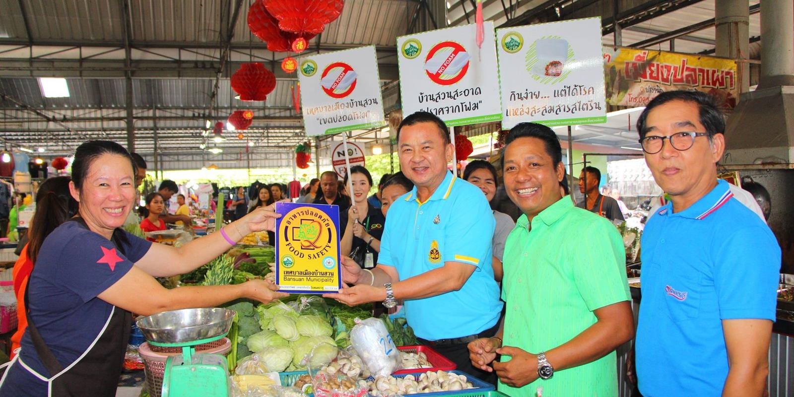 21 ส.ค.62 เวลา 16.30 น. นายจักรวาล ตั้งประกอบ นายกเทศมนตรีเมืองบ้านสวน พร้อมด้วยคณะผู้บริหาร สมาชิกสภาเทศบาล และงานคุ้มครองผู้บริโภคและสุขาภิบาลอาหาร กองสาธารณสุขและสิ่งแวดล้อม ลงพื้นที่ดำเนินการมอบป้าย อาหารปลอดภัย ตามโครงการเฝ้าระวังความปลอดภัย ด้านอาหาร ประจำปีงบประมาณ 2562 โดยมอบให้แผงค้าที่ผ่านการตรวจสอบสารปนเปื้อน 2 ครั้ง และเดินรณรงค์ประชาสัมพันธ์โครงการลดเสี่ยงเลี่ยงการใช้โฟมบรรจุอาหาร บริเวณตลาดนัดซอย 11