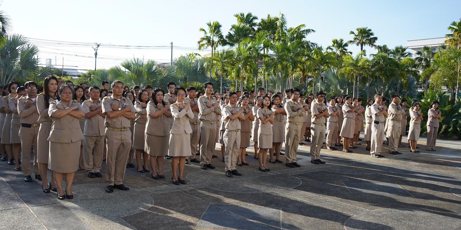 2 ธ.ค.62 เวลา 8.00 น. ว่าที่ ร.ท.หาญณรงค์ เกิดคล้าย ปลัดเทศบาลเมืองบ้านสวน นำพนักงานเทศบาลเมืองบ้านสวน ร่วมเข้าแถวเคารพธงชาติ พร้อมกล่าวคำปฏิญาณตน เพื่อร่วมใจกันสำนึกคุณ ชาติ ศาสน์ กษัตริย์ และเพื่อเสริมสร้างความสามัคคี ตามโครงการปกป้อง เชิดชู สถาบันพระมหากษัตริย์และสถาบันหลักของชาติ ณ บริเวณหน้าเสาธง อาคารอเนกประสงค์เทศบาลเมืองบ้านสวน