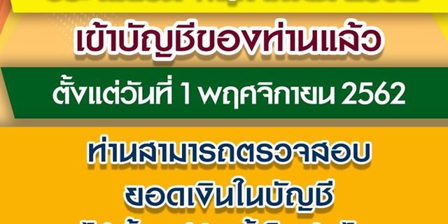 พ.ย.12019ข่าวกิจกรรม Facebook เทศบาลเมืองบ้านสวนโอนเงินเบี้ยยังชีพผู้สูงอายุ ผู้พิการ และผู้ป่วยเอดส์ ประจำเดือนพฤศจิกายน 2562 เข้าบัญชีของท่านแล้ว