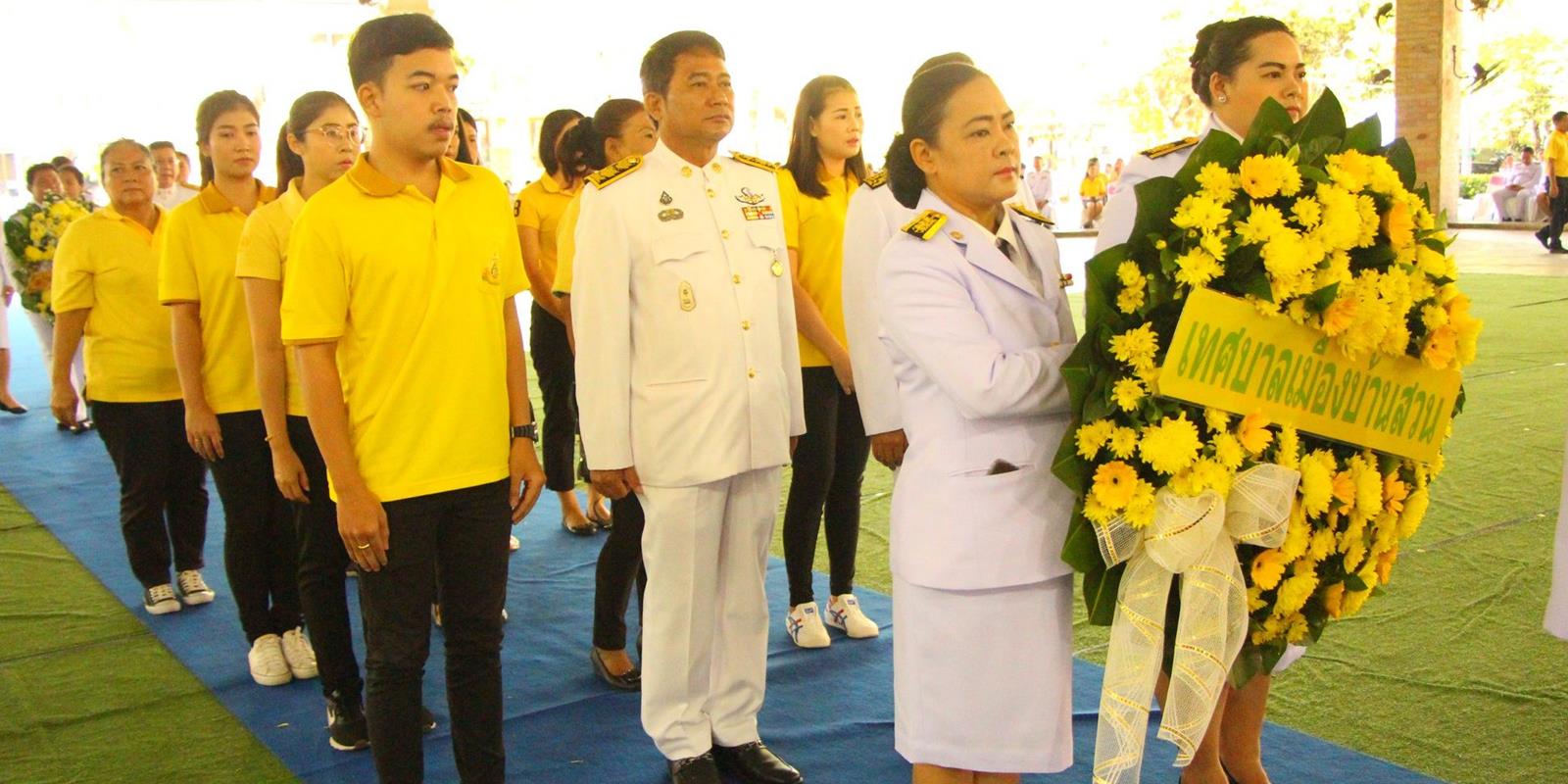 13 ต.ค.62 เวลา 8.00 น. นายพศิน กุลธนโรจน์ ที่ปรึกษานายกเทศมนตรีเมืองบ้านสวน พร้อมด้วย ว่าที่ ร.ท.หาญณรงค์ เกิดคล้าย ปลัดเทศบาลเมืองบ้านสวน นำพนักงานเทศบาลเมืองบ้านสวน เข้าร่วมพิธีวางพวงมาลาและถวายบังคม เนื่องในวันสวรรคตพระบาทสมเด็จพระบรมชนกาธิเบศร มหาภูมิพลอดุลยเดชมหาราช บรมนาถบพิตร ณ อาคารอเนกประสงค์โรงเรียนชลกันยานุกูล อำเภอเมืองชลบุรี จังหวัดชลบุรี