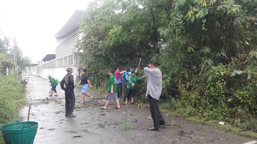2 ต.ค.62 เวลา 14.30 น. นายจักรวาล ตั้งประกอบ นายกเทศมนตรีเมืองบ้านสวน มอบหมายให้งานป้องกันและบรรเทาสาธารณภัย ดำเนินการตัดต้นไม้ที่โค่นล้ม บริเวณซอยบ้านสวน – หนองข้างคอก 4
