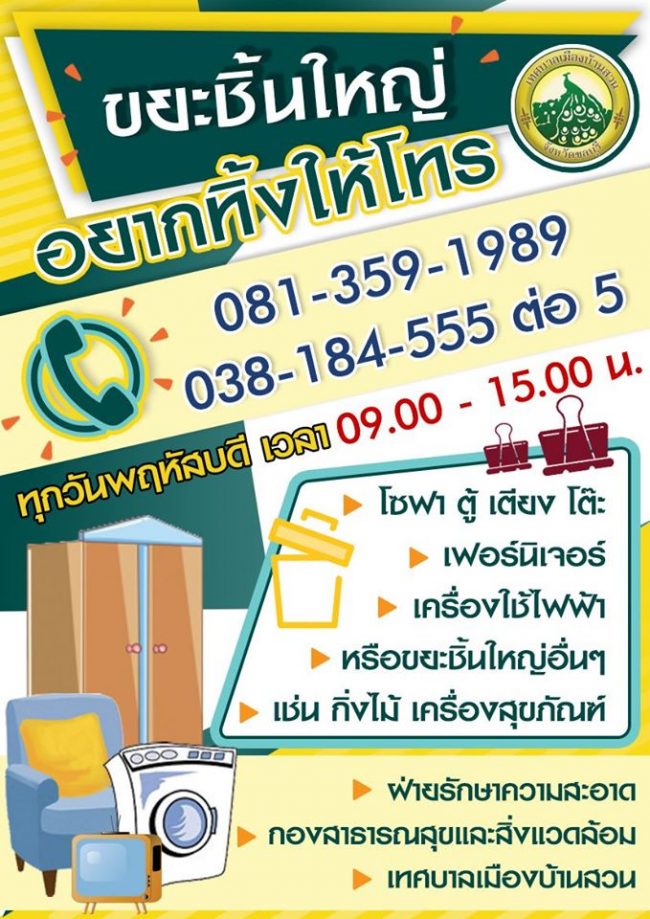 เทศบาลเมืองบ้านสวนได้กำหนดกิจกรรม “นัดวันทิ้งขยะชิ้นใหญ่” เพื่อส่งเสริมให้ประชาชนมีส่วนร่วมในการดูแลรักษาสภาพแวดล้อมในชุมชน