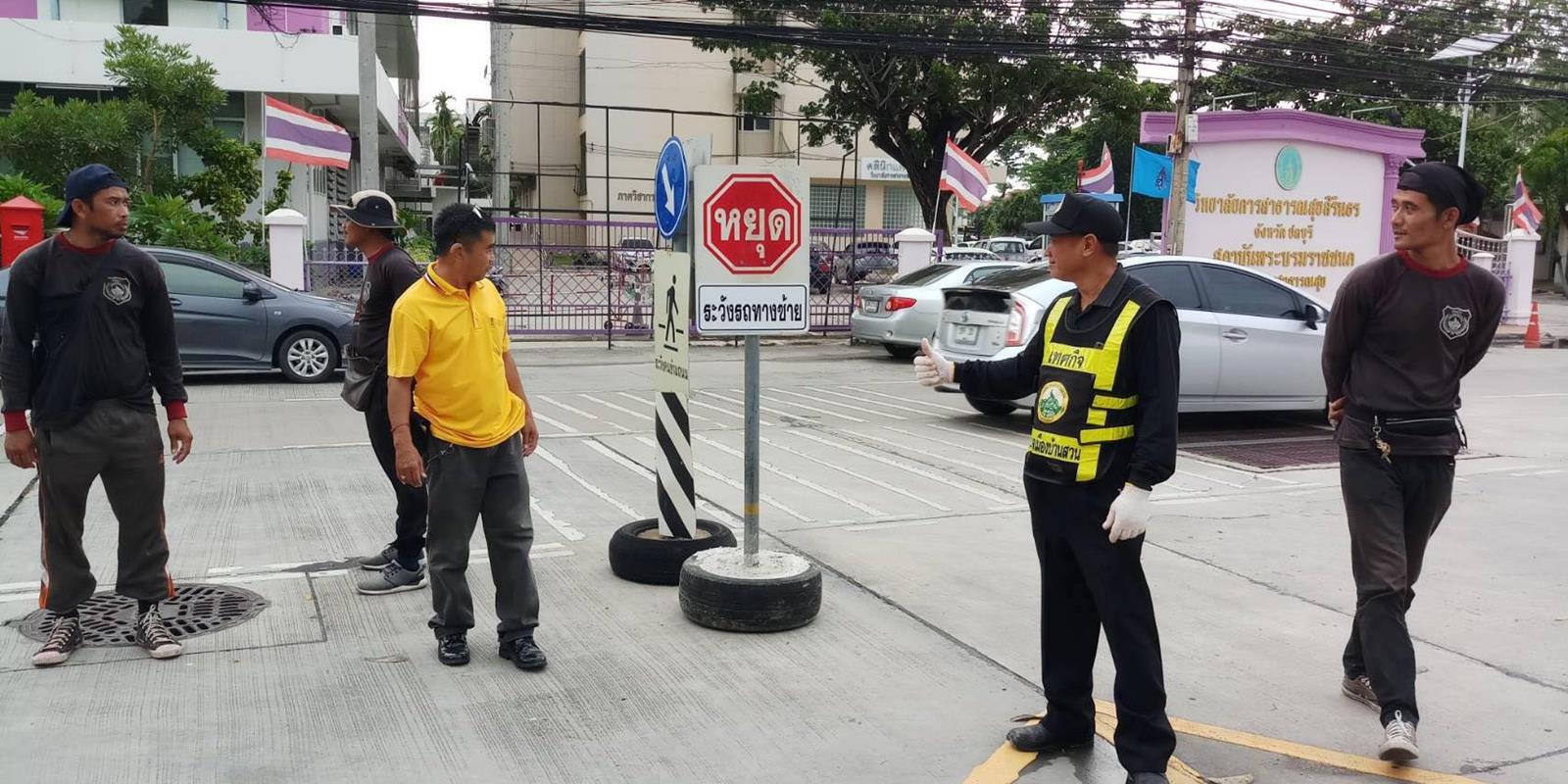7 ต.ค.62 เวลา 9.00 น. นายจักรวาล ตั้งประกอบ นายกเทศมนตรีเมืองบ้านสวน มอบหมายให้เจ้าหน้าที่เทศกิจ ดำเนินการติดตั้งป้ายหยุดระวังรถทางซ้าย , ป้ายระวังคนข้ามถนน บริเวณหน้าวิทยาลัยสาธารณสุขสิรินธร